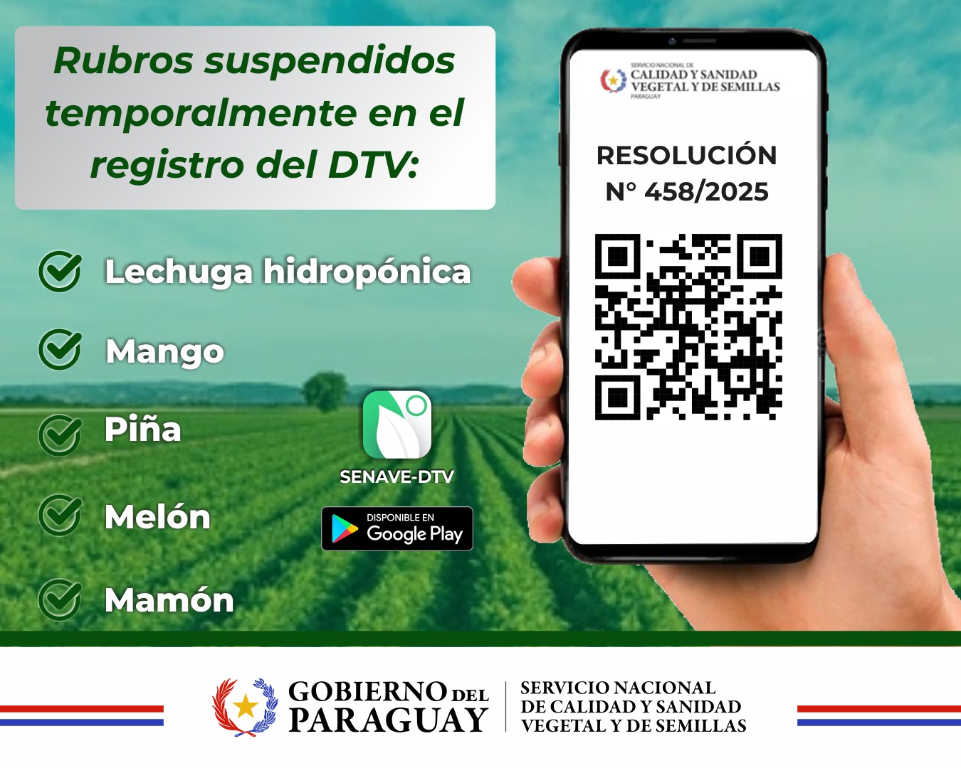El desarrollo de este sitio web fue posible gracias al apoyo del programa Food for Progress del Departamento de Agricultura de los Estados Unidos (USDA). El contenido de esta página es responsabilidad del SENAVE y no refleja necesariamente las opiniones del USDA.
